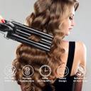 Jumbo Ceramic Tourmaline 3 Barrel Triple Curling Iron Wand Hair Waver for Beachy Frizz-Free Waves