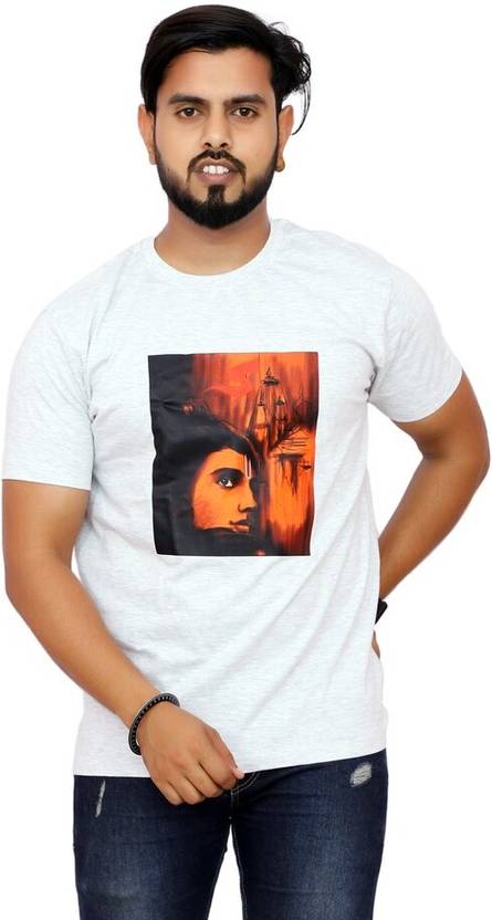 Men Printed Round Neck Pure Cotton White T-Shirt