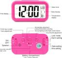 The real LCD screen display and the large-scale display station can see the time far away; It features photosensitive electronic luminous function. When the ambient light is not enough to see the time, it will automatically light up the backlight; (this function can be switched) Looking down at the humanized design of the best perspective, because most of the time, people's eyes and alarm clocks are placed in a down state; The easiest time setting and alarm switch; The normal backlight is lit as soon as it is on, and the power saving is automatically turned off after a few seconds. Gradually ringtone + snooze function. (1) Large size LCD display screen (11CM*5CM); (2) Smart light function: smart light technology is (night light sensing) with a soft light, can see the time at night, but it will not glare and affect sleep, more importantly, save power, and smart lights can be free switch. (3) With temperature display, Fahrenheit and Celsius can be converted at will. (4) With snooze function: When the ringer sounds, press the top button, the ringtone will stop, and it will continue to sound after 5 minutes; the alarm will change gradually. (5) Soft blue or white background night light, perpetual calendar, 24 hours / 12 hours conversion. (6) Extremely simple operation settings, the operation can be operated basically without looking at the manual. Power supply: 3*AAA battery (Without battery) Package Includes: 1 x alarm clock(not include battery)