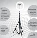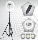 Ring light with 10 inch outer diameter, medium size with powerful lighting. Comes with ball head mount for tripod and cell phone holder, easy to install and use on tripod, lighting for phone photography or live video. After installed on the ball head mount adapter, the ring light can be rotate 360 degree to any angle that you need or turn it from horizontal to vertical orientation Multifunctional ring light not only can be used as photography or live video light, but also suitable for makeup, reading, indoor and outdoor lighting. with USB port, this ring light is easy for powered by wall charger, computer or power bank White light, warm white light, warm yellow light three color modes, each light color has 10 levels of brightness to adjust to meet the lighting needs for taking photos, videos or makeup, reading books in different environments Professional photography ring light,