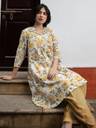 Step into elegance with janasya's off-white cotton a-line tunic, a stunning addition to your wardrobe. This tunic boasts a floral printed design in a regular fit, offering both style and comfort. The notch neckline and pleat on the neck add subtle sophistication, while the side pocket adds practicality and charm. Secure the neckline with the convenient push button closure, perfect for effortless styling. With its timeless appeal and thoughtful details like the left side pocket opening, this tunic is a versatile choice for any occasion.