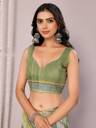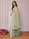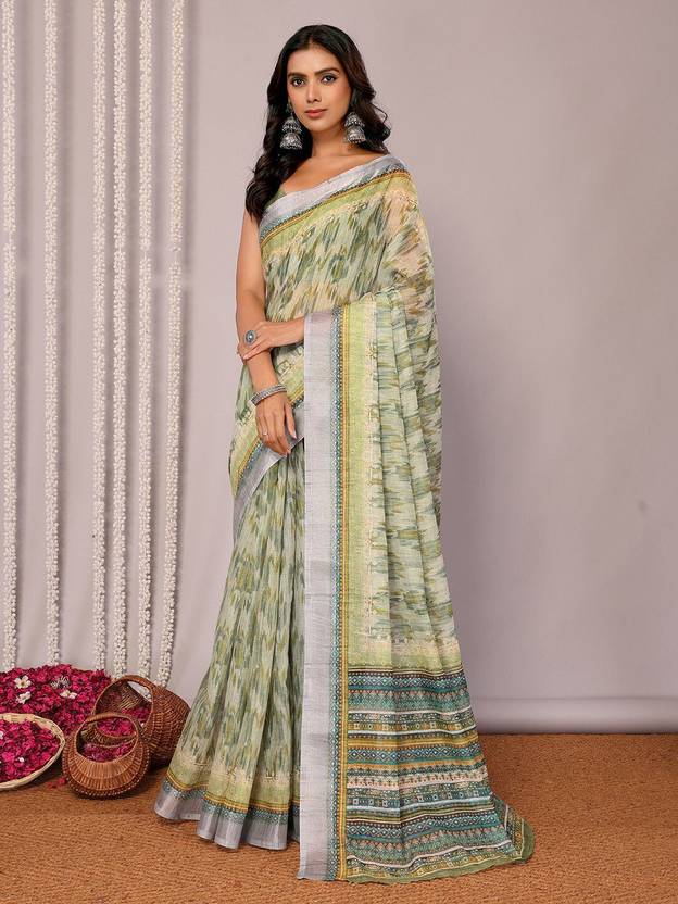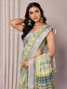 This elegant green saree features a delicate abstract print that radiates timeless beauty. The abstract print adds a contrasting touch of warmth, elevating its aesthetic appeal. Made from linen cotton fabric, this saree drapes effortlessly, offering both style and comfort. Perfect for festive occasions or intimate gatherings, itโs a versatile piece that reflects craftsmanship and tradition. Pair it with the matching blouse for a complete, refined look.