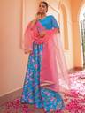 The Janasya Women's Blue Crepe Silk Digital Floral Printed Lehenga Choli With Dupatta is a stylish and elegant ethnic ensemble suitable for festive occasions. The outfit comes in a vibrant blue color, adding a lively and festive touch to the overall look. The lehenga choli is crafted from crepe silk. The outfit features a digital floral print design. This means that the floral patterns on the fabric are applied using digital printing technology, allowing for intricate and detailed designs with vibrant colors.