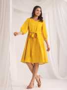 Dress Length: 43(IN) | Colour: Orange | Pattern: Woven Design | Occasion: Casual | Style: A-Line | Sleeve Type: Three-Quarter Sleeves (Balloon Sleeves )