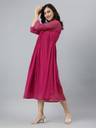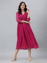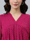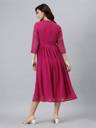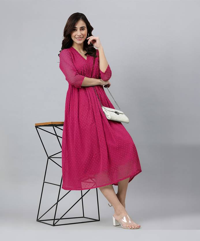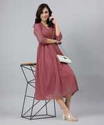 Embrace Effortless Elegance With This Flared Pink Dobby Chiffon Dress By Janasya. Designed With An Alia-Cut Neckline And A Graceful Flared Fit, This Dress Is Both Modern And Sophisticated. The Delicate Dobby Texture Adds A Touch Of Charm, Making It A Versatile Choice For Any Occasion. Style It With Subtle Accessories To Let The Soft Pink Hue And Chic Silhouette Take Center Stage