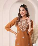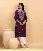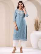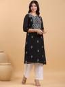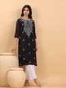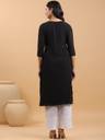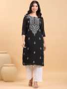 Get ready for Janasya’s Black Georgette Embroidered Straight Kurta, featuring a round neck and quarter sleeves for an elegant fit. The embroidery on the yoke pops up wonderfully against the black georgette base, perfect as casual wear. Style it with white bottoms and minimal jewelry and be the shining star amongst the crowd.