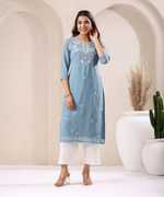 Get ready for Janasya’s Black Georgette Embroidered Straight Kurta, featuring a round neck and quarter sleeves for an elegant fit. The embroidery on the yoke pops up wonderfully against the black georgette base, perfect as casual wear. Style it with white bottoms and minimal jewelry and be the shining star amongst the crowd.