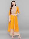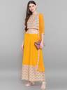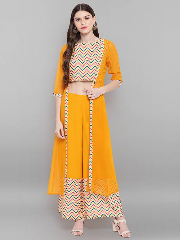 Style:-Kurta Length: 15(inch), Bottom Length: 37(inch) | Pattern: Chevron/Zig Zag | Occasion: Festive | Type: Crop Top | Sleeve Type: 3/4 Sleeve Regular Sleeves | Color: Yellow