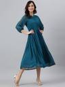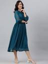 This kurta by Janasya will have you turning heads for all the right reasons. Made from poly chiffon, this dobby weave kurta has manadarin collar, puff sleeves with gathers on waistline adding flair to this pretty kurta. Pair it with leggings and flats to complete the look.