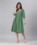 Janasya Women Fit and Flare Orange Midi/Calf Length Dress