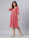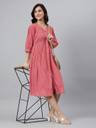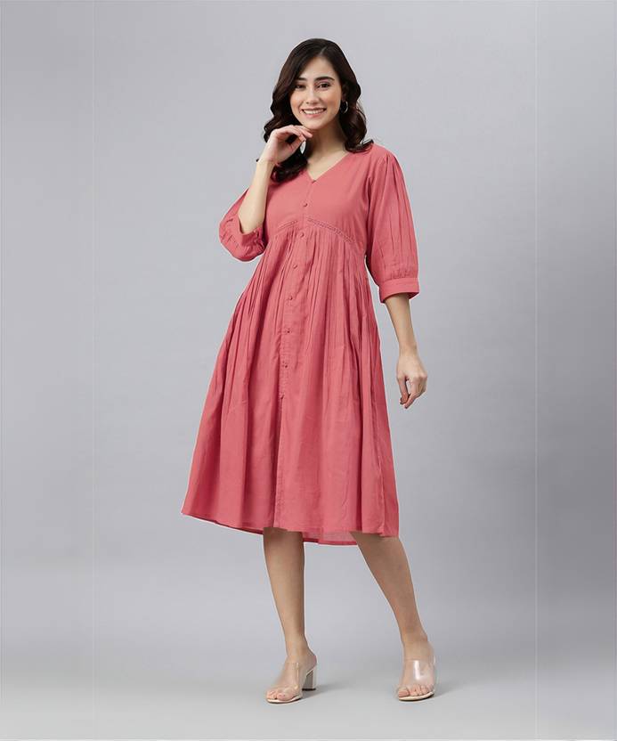 Exude charm with Janasya’s Peach Cotton Gathered Dress, a perfect blend of elegance and comfort. Designed with a graceful V-neck adorned with potli buttons, this Dress brings timeless appeal. The cuffed sleeves and delicate schiffli lace detailing add a touch of sophistication, while the gathers under the bust create a flattering, flowy silhouette.
