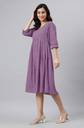 Embrace timeless charm with Janasya’s Lavender Cotton Gathered Dress. Crafted for elegance, it features a flattering V-neck adorned with delicate potli buttons and cuffed sleeves for a sophisticated touch. The schiffli lace detailing adds a hint of grace, while the gathers under the bust create a flowy, feminine silhouette. Perfect for any occasion, this Dress is a blend of comfort and understated style.