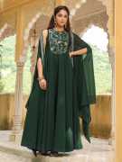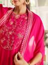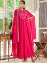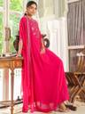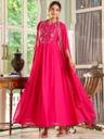 Elevate your ethnic style with the gorgeous Anarkali dress from Janasya. Crafted from weightless georgette, it is perfect for festive events. This gorgeous pink dress has embroidered zari work giving it a classy touch. It has a button & loop closure for easy wear.