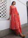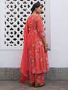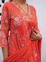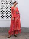 Revitalize your wardrobe with the pleated red georgette mix and match kurta set, an elegant ethnic elegance and contemporary flair. The embroidered floral pattern with gathers adds a touch of sophistication to the redhue, making it a versatile piece for various occasions. The kurta features the V-neck and floral embroidered details that bring a hint of charm and grace. Paired with straight palazzo pants and solid dupatta making you stand out embracing the beauty of the set elevatating your style effortlessly.