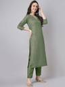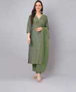 Kurta Length: 47 (Inch) | Pant Length: 39 (Inch) | Dupatta Length: 2.3 Mtr | Colour: Green | Pattern: Embroidered | Occasion: Festive | Style: Regular | Sleeve Type: Three-Quarter Sleeves