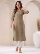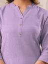 Discover understated elegance with janasya's purple linen cotton straight kurta. Crafted from breathable linen cotton, this kurta features a sleek band with a v-neck, adding a touch of sophistication to its minimalist design. The button ornamentation down the front enhances its classic appeal, while the side pocket adds practical convenience. Effortlessly chic and versatile, this kurta pairs beautifully with your favourite bottoms. Style it with minimal accessories and comfortable flats for a refined, classy look.