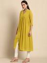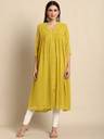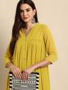 Janasya Women Woven Design Frontslit Kurta (Yellow)