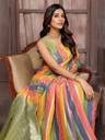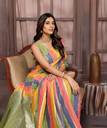 Brighten your wardrobe with this multi-color spun cotton saree, showcasing a vibrant array of hues. The pallu features a stunning mustard fabric adorned with an intricate woven pattern, adding depth and charm to the ensemble. Perfect for casual gatherings or festive occasions, this saree combines comfort with eye-catching style.