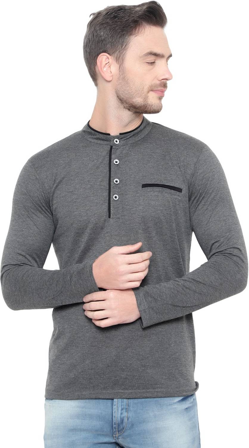 Jangoboy Solid Men Mandarin Collar Grey T-Shirt