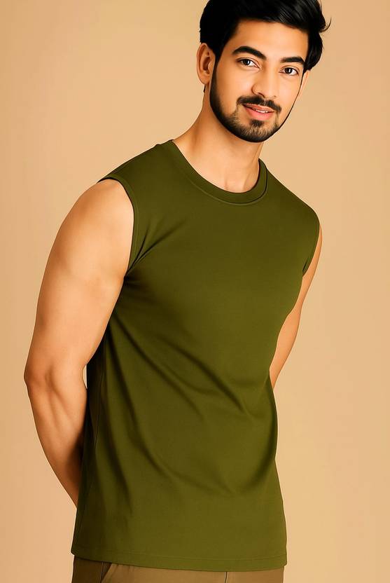 Jangoboy Solid Men Round Neck Dark Green T-Shirt