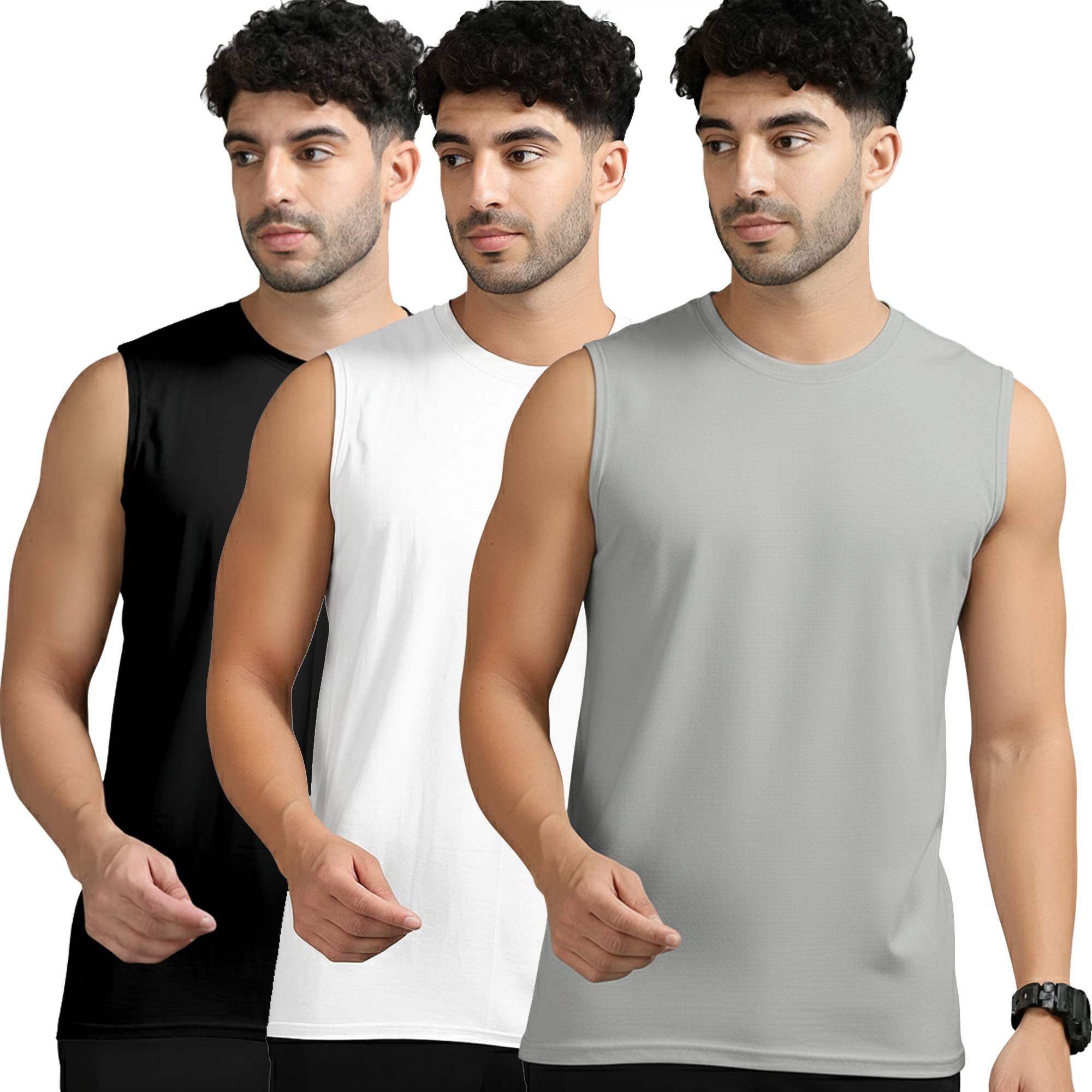 Jangoboy is all about making high-quality, stylish clothing that you can wear every day. We use the best materials to ensure our clothes are comfortable and durable. Our designs are simple and modern, perfect for any occasion. With Jangoboy, you get classic, versatile pieces that fit seamlessly into your wardrobe The Micro Polyester High-Performance Sleeveless T-Shirt for Men is designed for ultimate comfort and versatility. It offers excellent moisture-wicking properties, making it perfect for intense workouts. The slim fit in a solid color provides a sleek and modern look. With a comfortable round neck and a sleeveless design, this t-shirt is ideal for gym sessions, sports activities, and even lounging at home.