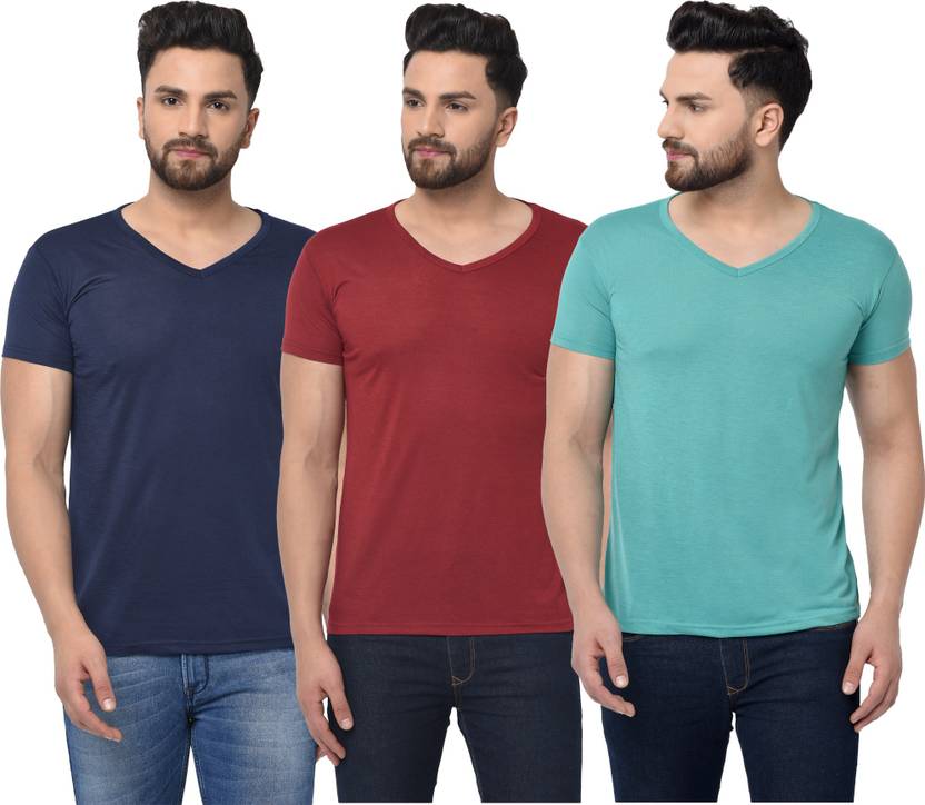 Pack of 3 Men Solid V Neck Cotton Blend Multicolor T-Shirt