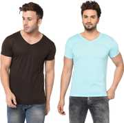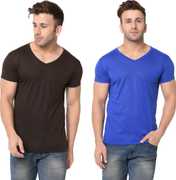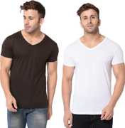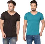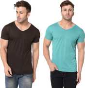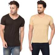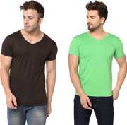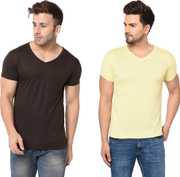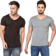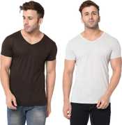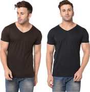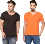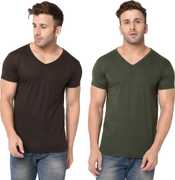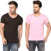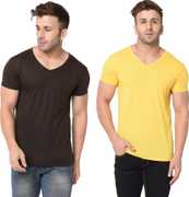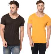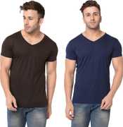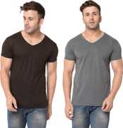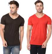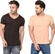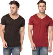 Jangoboy Solid Men V Neck Brown, Maroon T-Shirt
