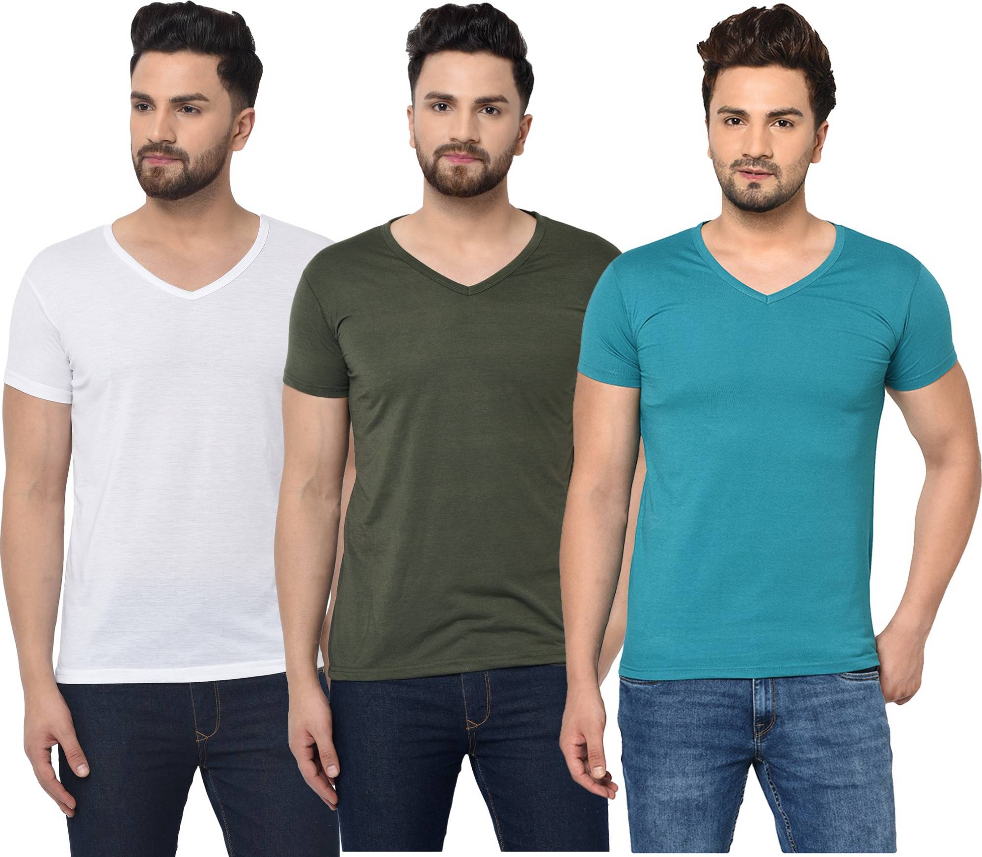 Consist of 3 V Neck Half Sleeve T-shirts Combo Pack