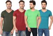 Pack of 4 Men Solid V Neck Cotton Blend Multicolor T-Shirt