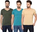 Pack of 3 Men Solid V Neck Cotton Blend Multicolor T-Shirt