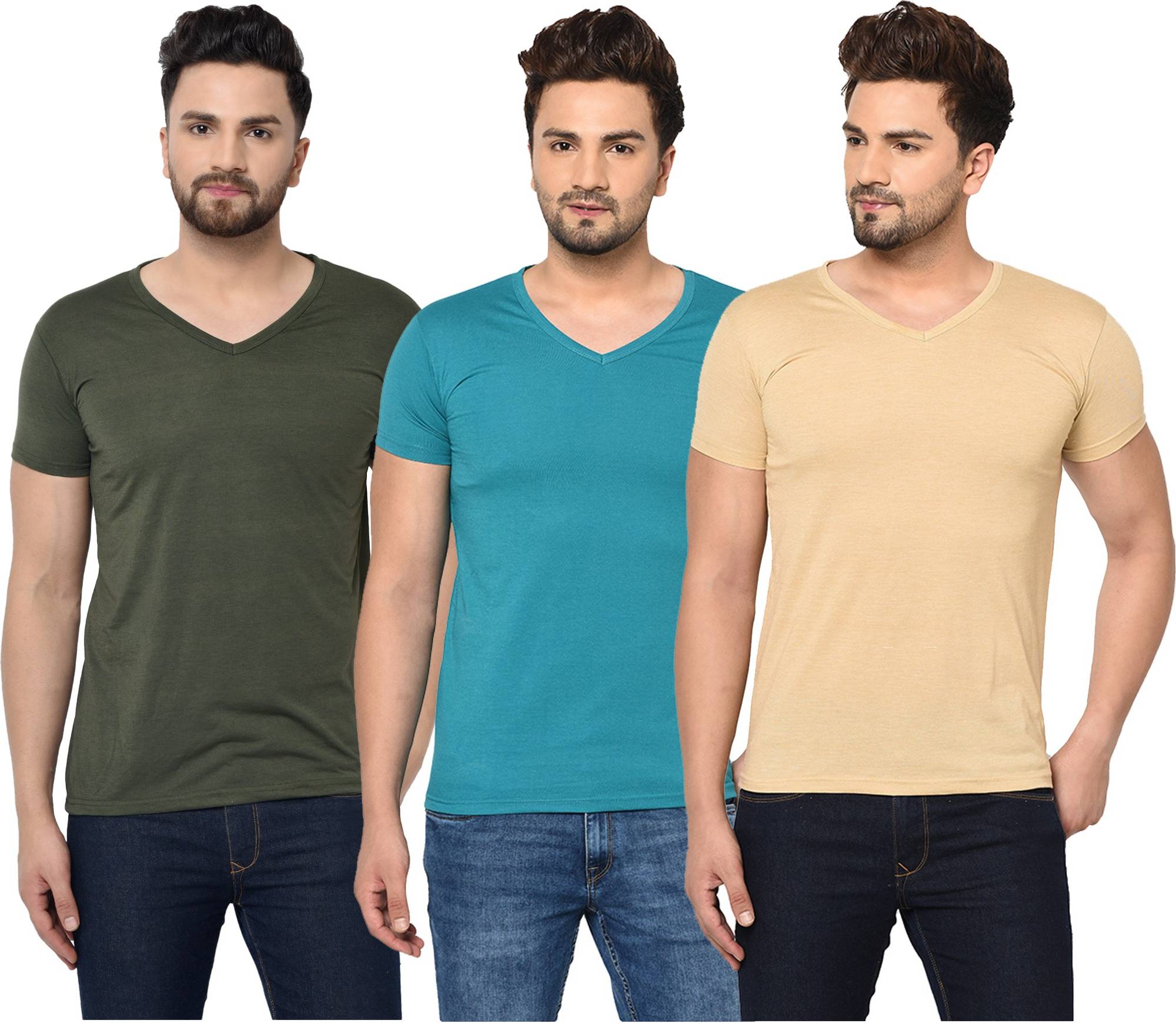 Jangoboy Solid Men V Neck Multicolor T-Shirt