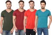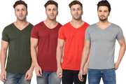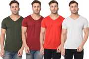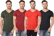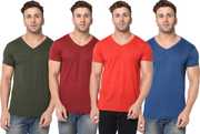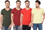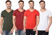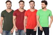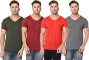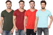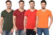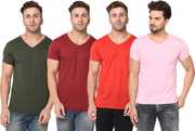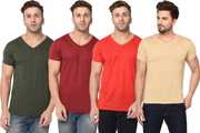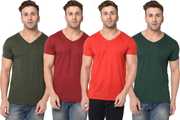 Pack of 4 Men Solid V Neck Cotton Blend Multicolor T-Shirt