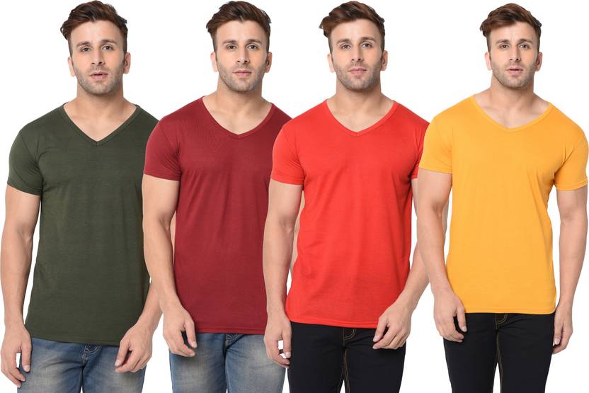 Adorbs Solid Men V Neck Multicolor T-Shirt
