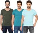 Pack of 3 V Neck T-Shirt Combo of 3 Men Solid V Neck Cotton Blend Multicolor T-Shirt