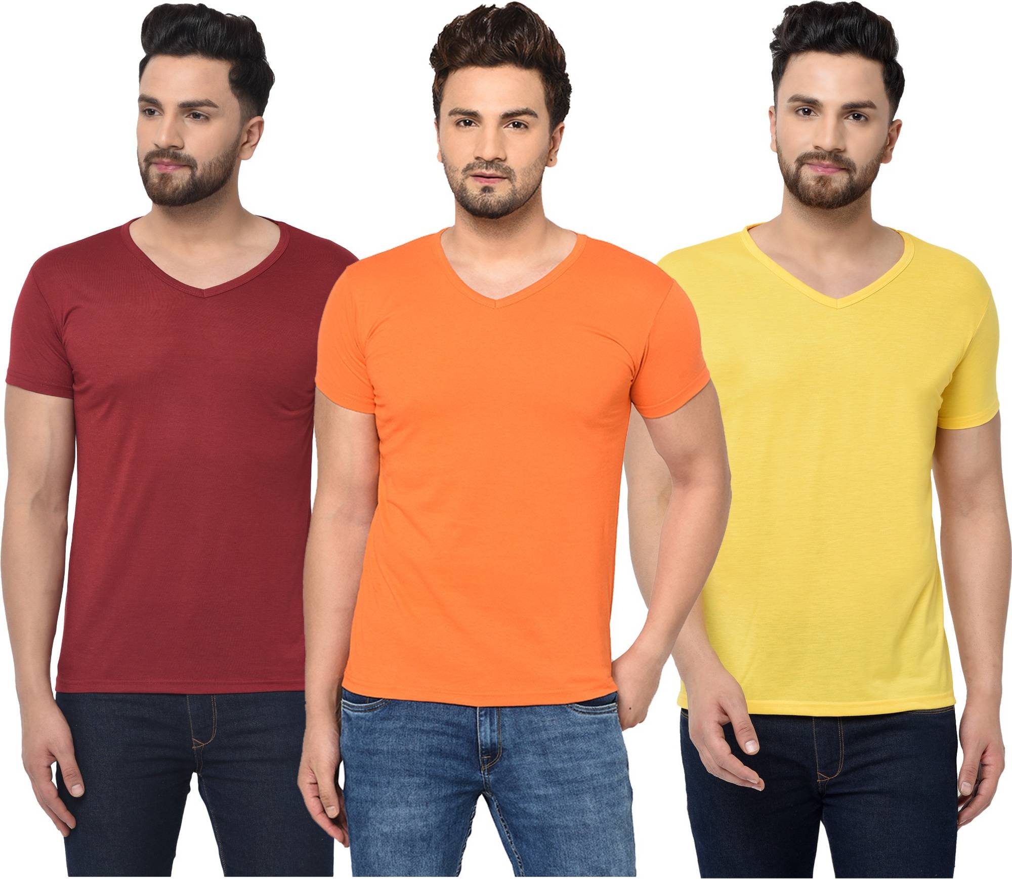 Jangoboy Solid Men V Neck Multicolor T-Shirt