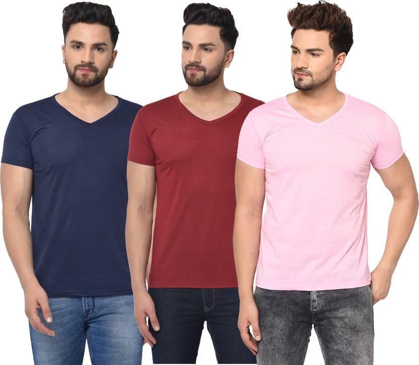 Jangoboy Solid Men V Neck Multicolor T-Shirt