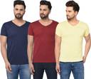 Pack of 3 Men Solid V Neck Cotton Blend Multicolor T-Shirt