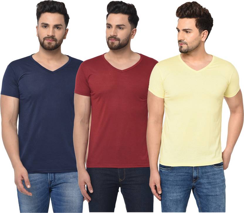 Jangoboy Solid Men V Neck Multicolor T-Shirt