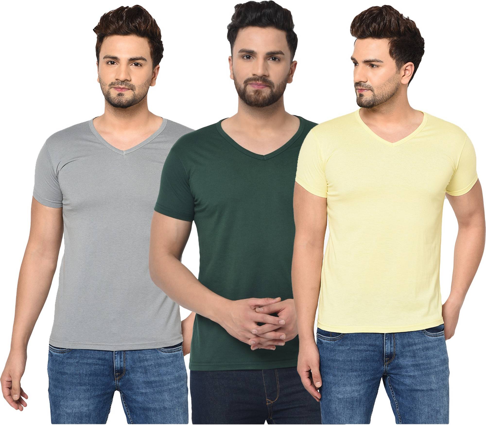 Consist of 3 V Neck Half Sleeve T-shirts Combo Pack