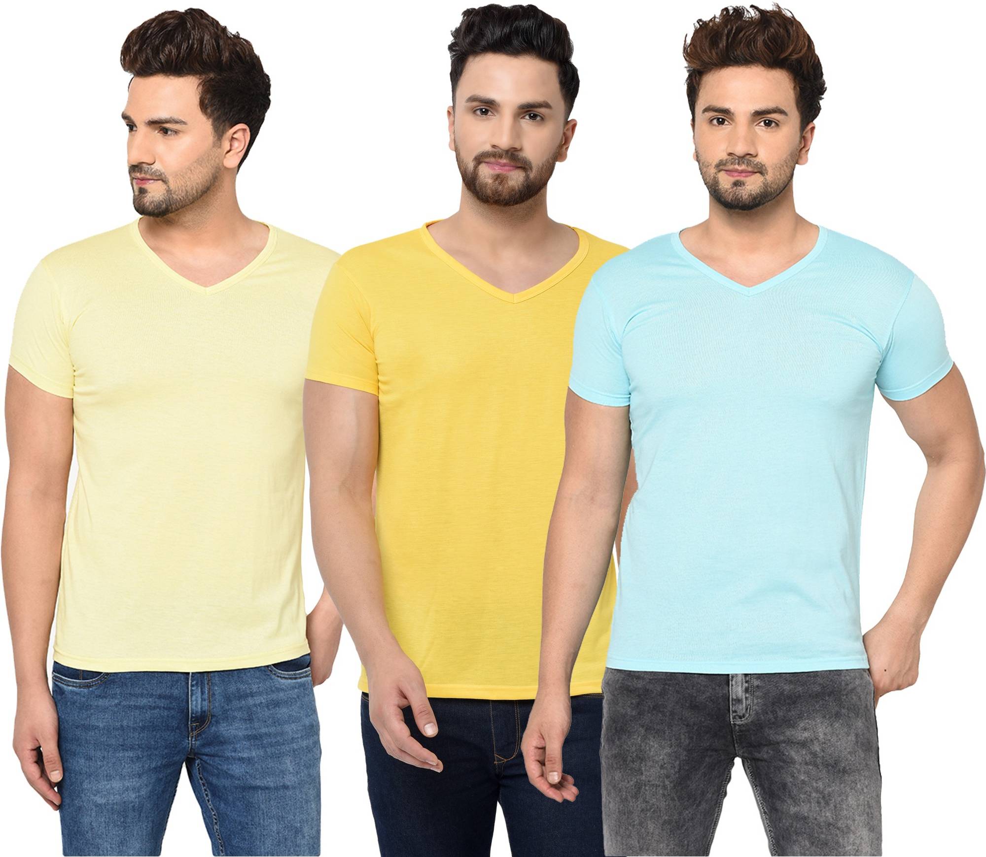 Consist of 3 V Neck Half Sleeve T-shirts Combo Pack