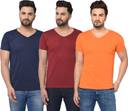 Pack of 3 Men Solid V Neck Cotton Blend Multicolor T-Shirt