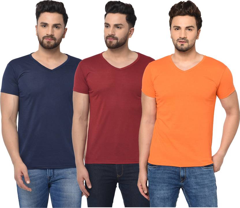 Jangoboy Solid Men V Neck Multicolor T-Shirt