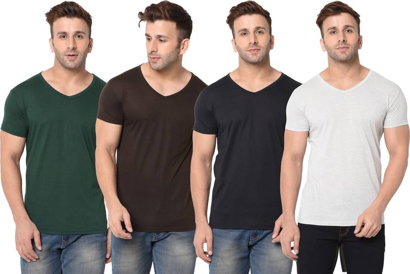 Adorbs Solid Men V Neck Multicolor T-Shirt