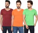 Pack of 3 V Neck T-Shirt Combo of 3 Men Solid V Neck Cotton Blend Multicolor T-Shirt