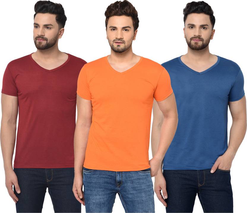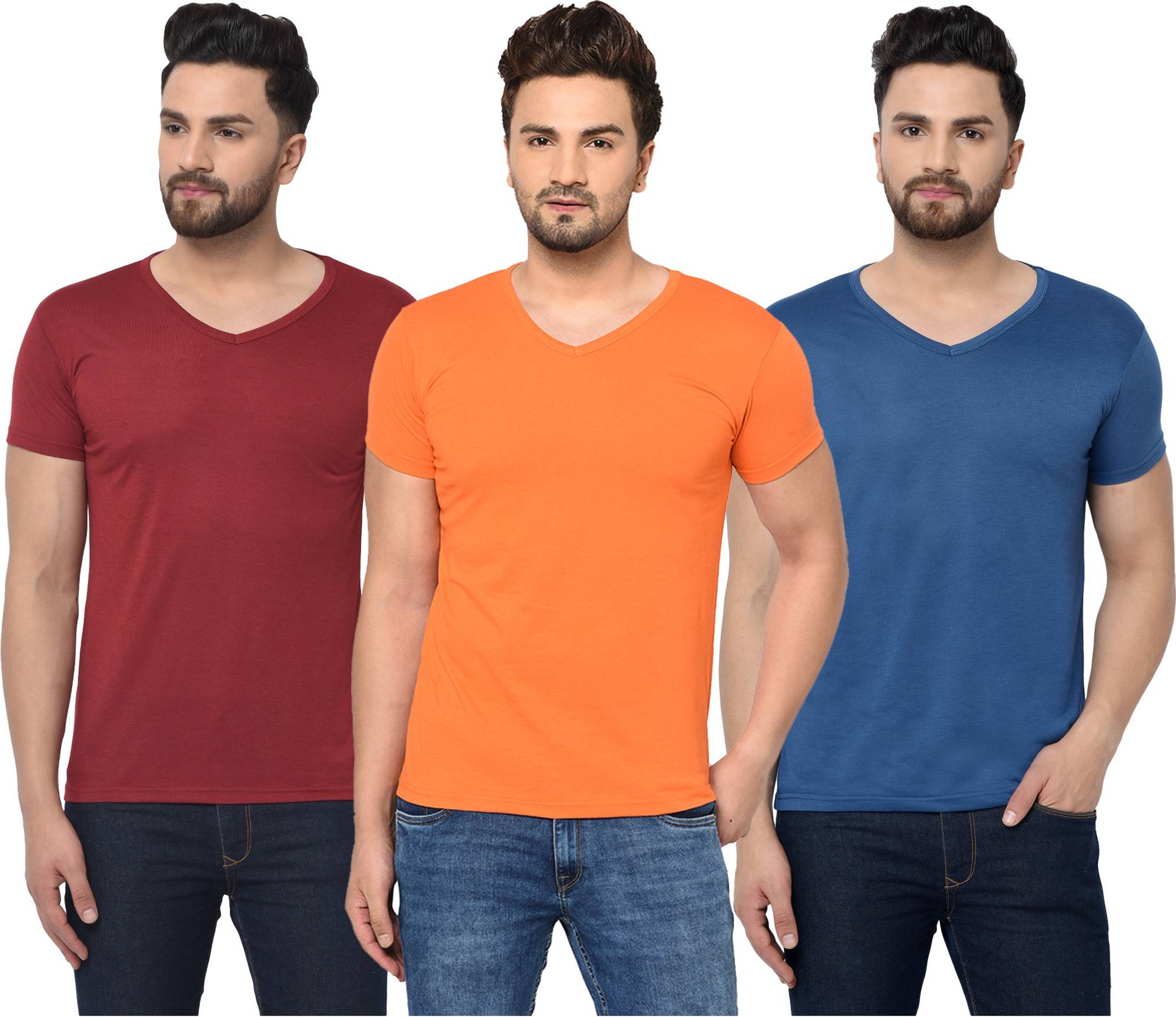 Pack of 3 V Neck T-Shirt Combo of 3 Men Solid V Neck Cotton Blend Multicolor T-Shirt