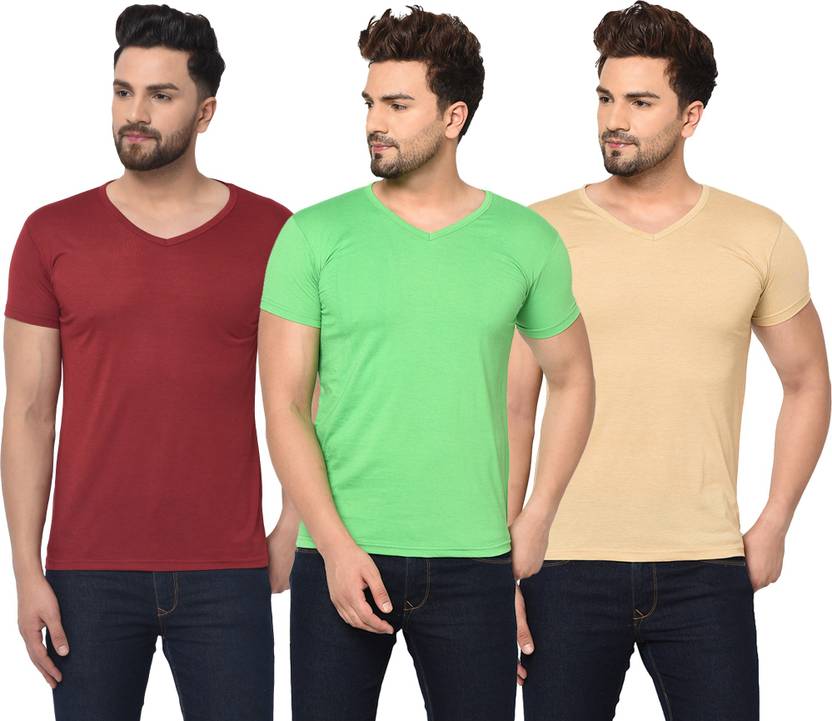 Jangoboy Solid Men V Neck Multicolor T-Shirt