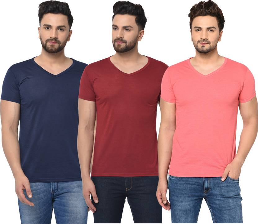 Jangoboy Solid Men V Neck Maroon, Blue, Pink T-Shirt