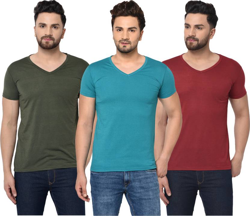 Jangoboy Solid Men V Neck Dark Green, Blue, Maroon T-Shirt