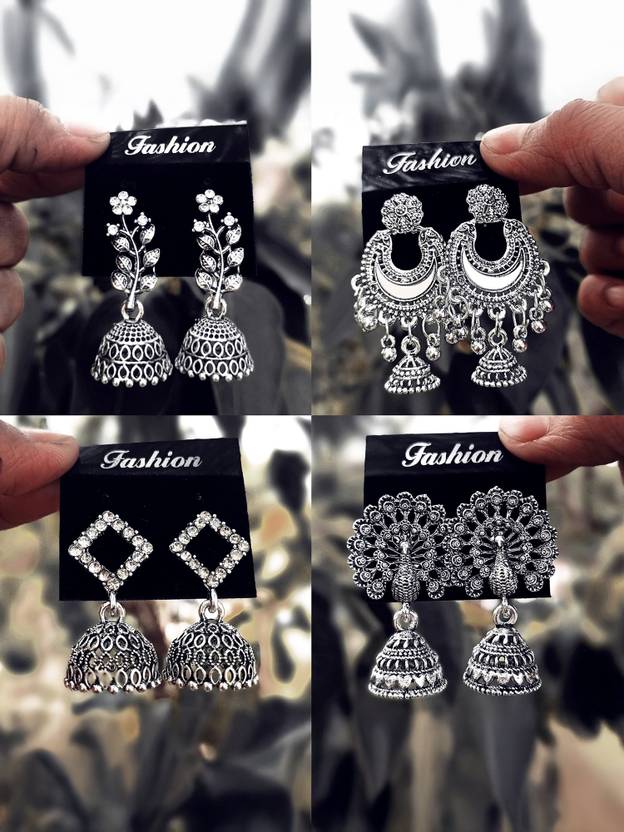 Janki Creation Combo Of 4 Silver With Evil Eye Bracelet Freebie Cubic Zirconia Alloy Jhumki Earring