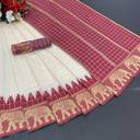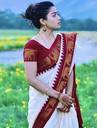 Solid/Plain Bollywood Pure Silk Saree (White, Red)
